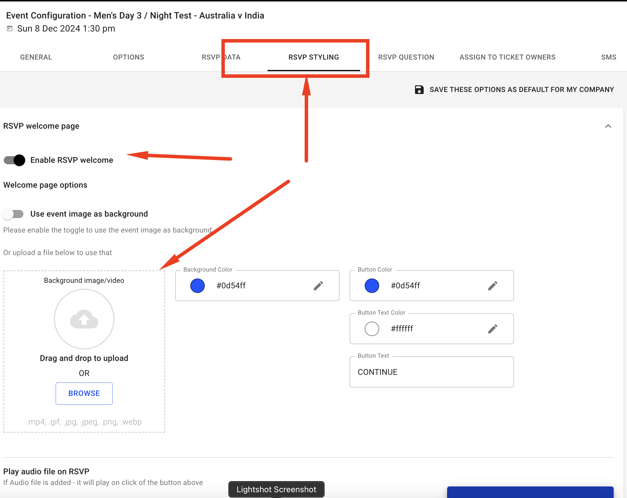 You can now add a page prior you the Standard RSVP page - a GIF or sound