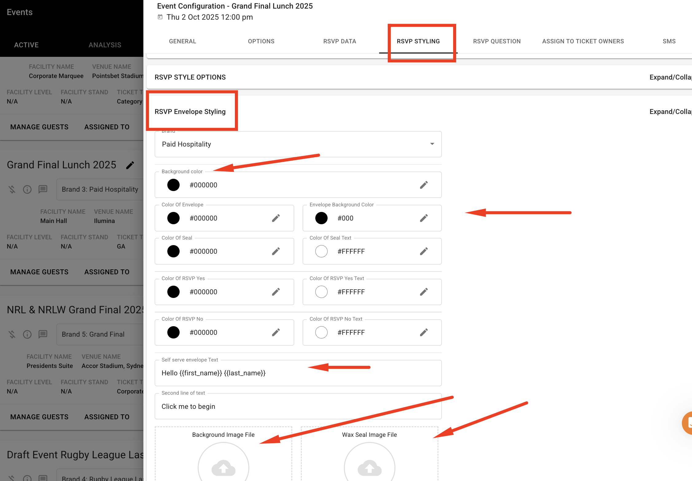 In the normal RSVP style area we have added many options to style the animation. The invitation you normally create/choose will automatically fly out of the envelope.