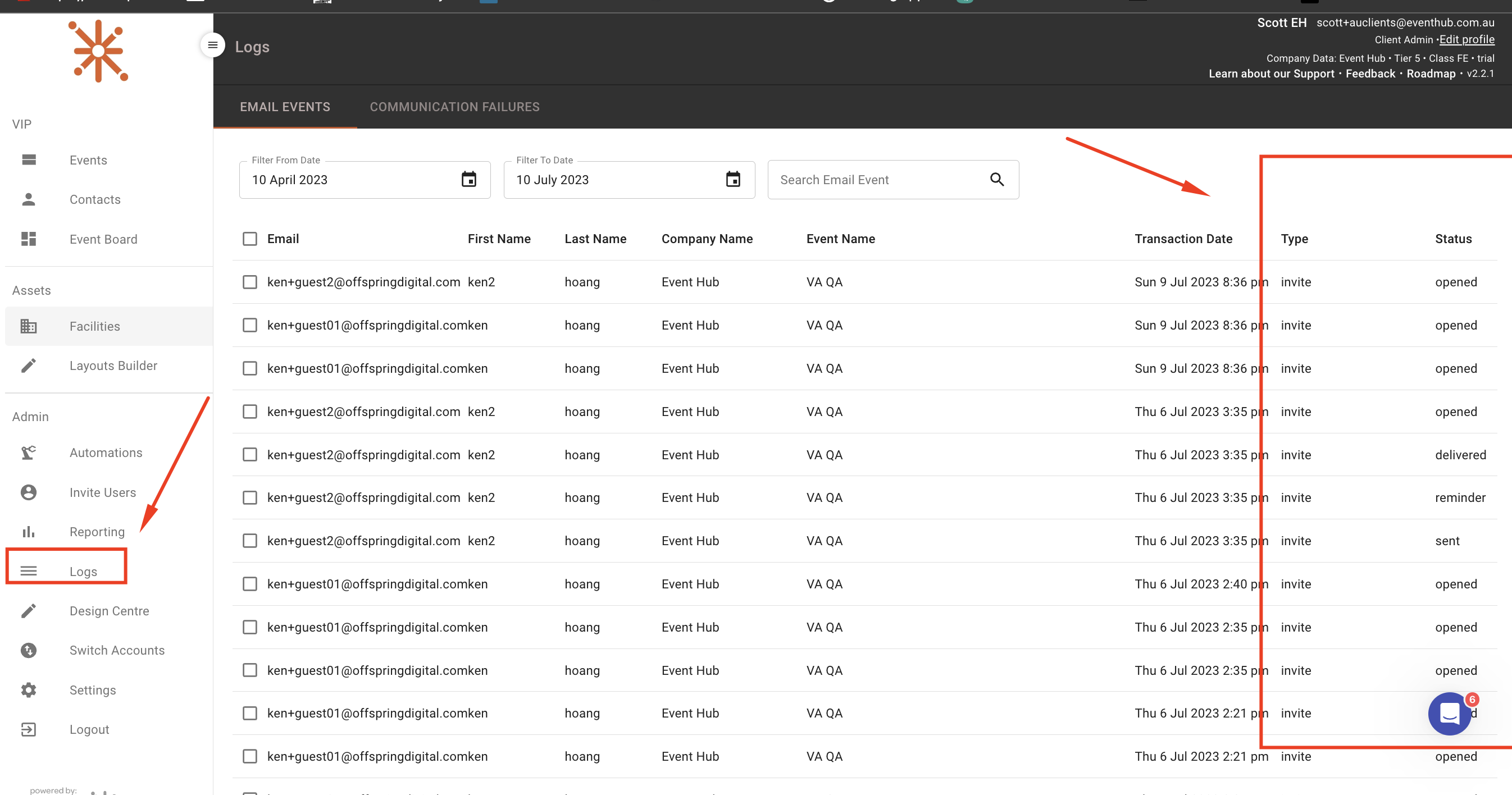 Email Logs are also now tracked in Event Hub. They are found here./