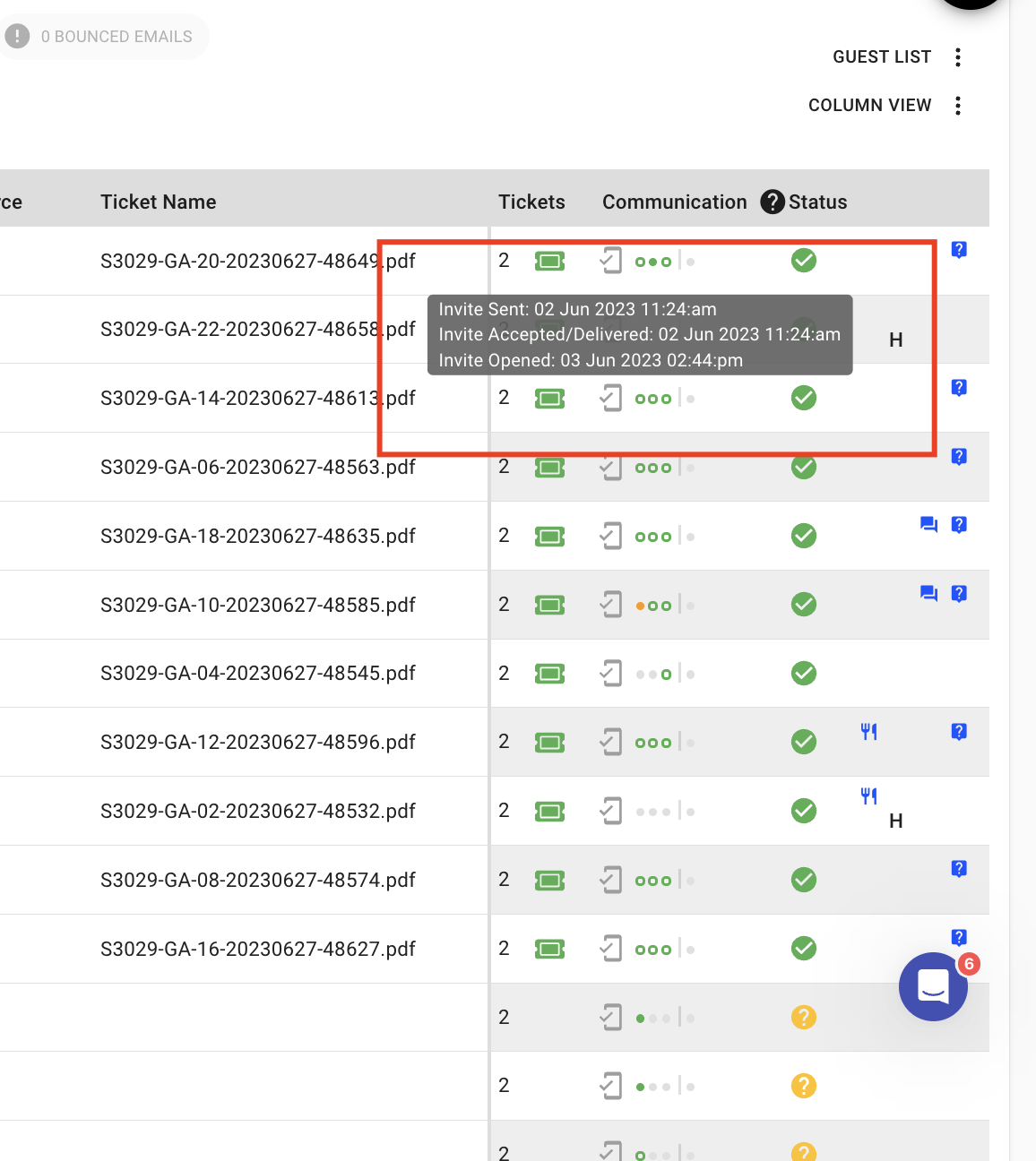 You can view this information from any event on the Manage Guest List where emails have been sent to guests.