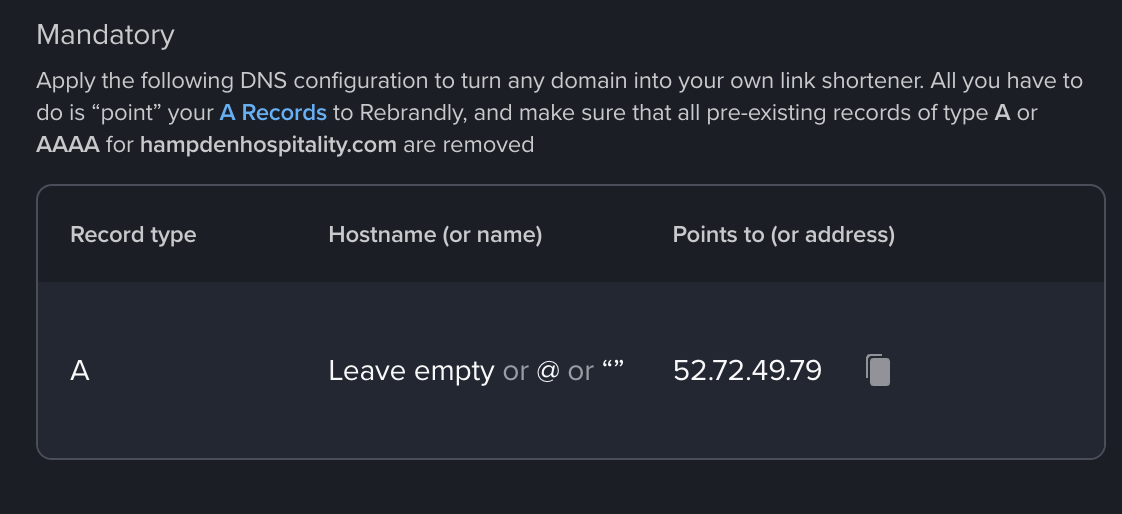 Youll need to share this with your own IT department so that we can use your domain above on the Link shortener.