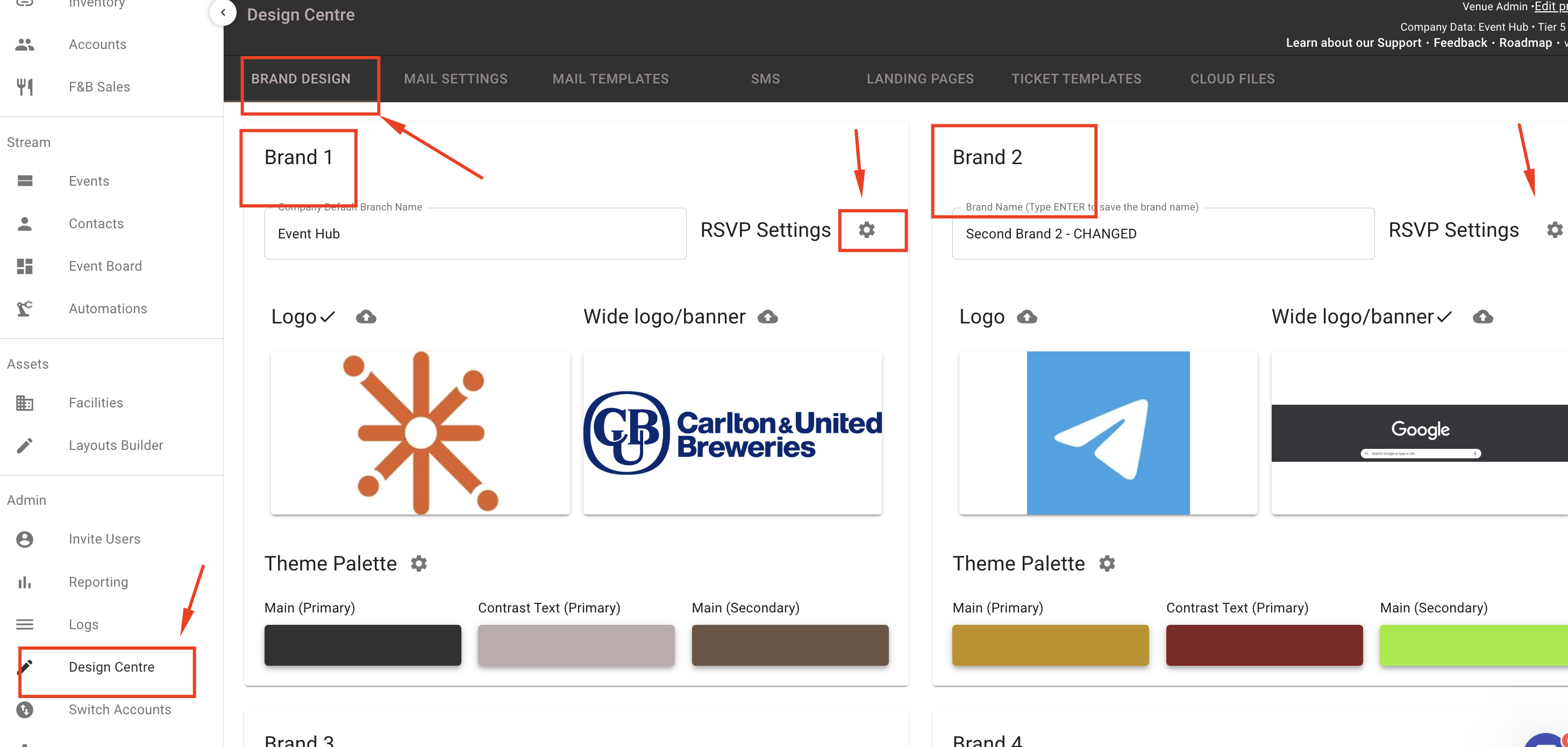 Event Hub defaults every new event to "Brand 1" - the master brand. Then any event can be set to any of the Brands set up. The RSVP will display as per the brand chosen.