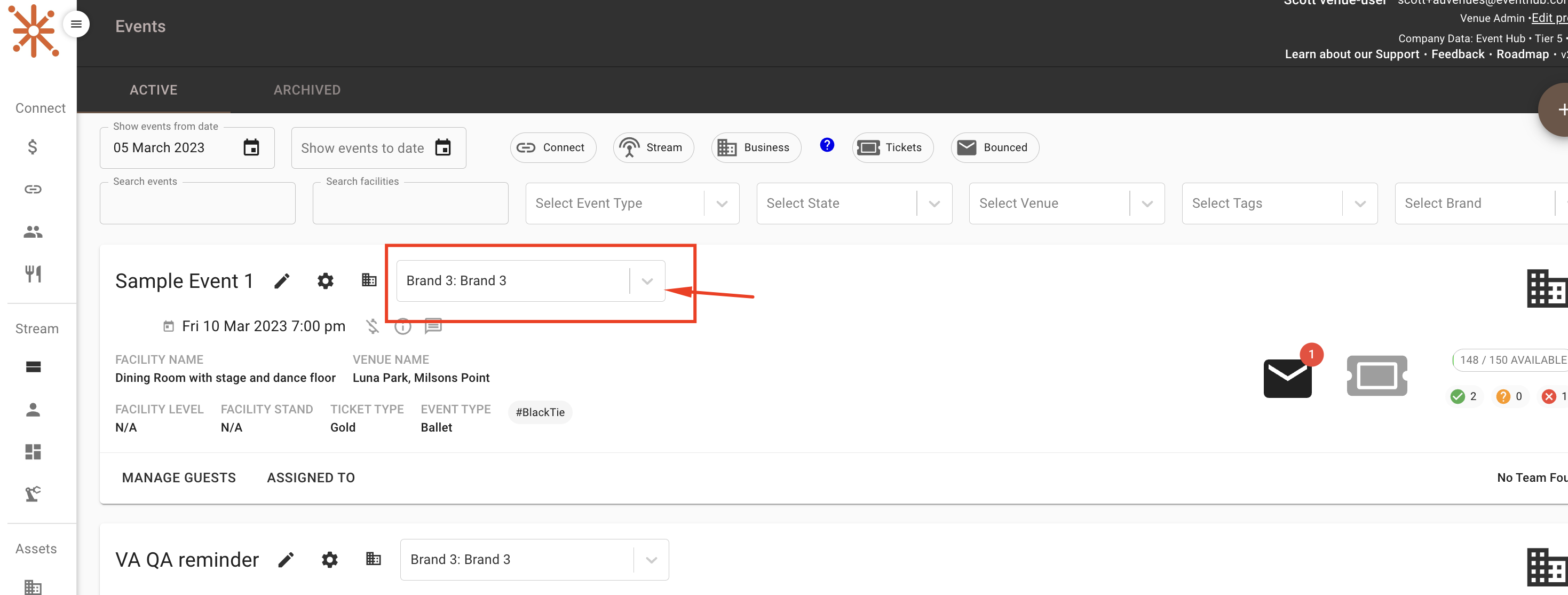 Firstly, you'll see users will be able to store "their preferred brand" and the Events list will be automatically filtered to that Brand when a user logs in.