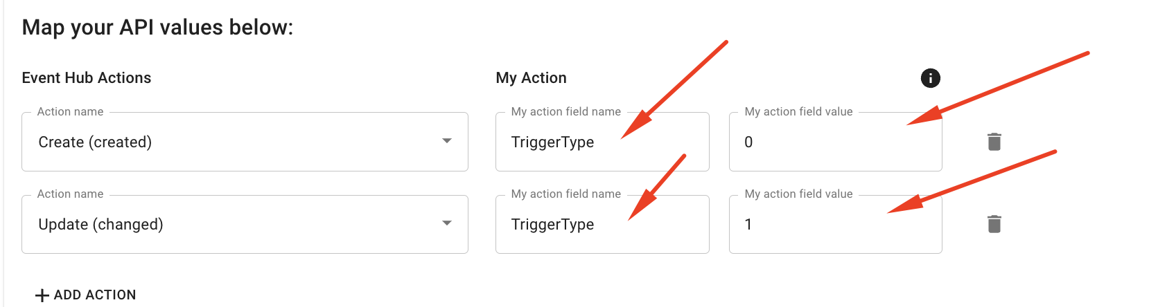 Here the post-type action is defined in the payload body. These "trigger" type values are also configurable in the app.