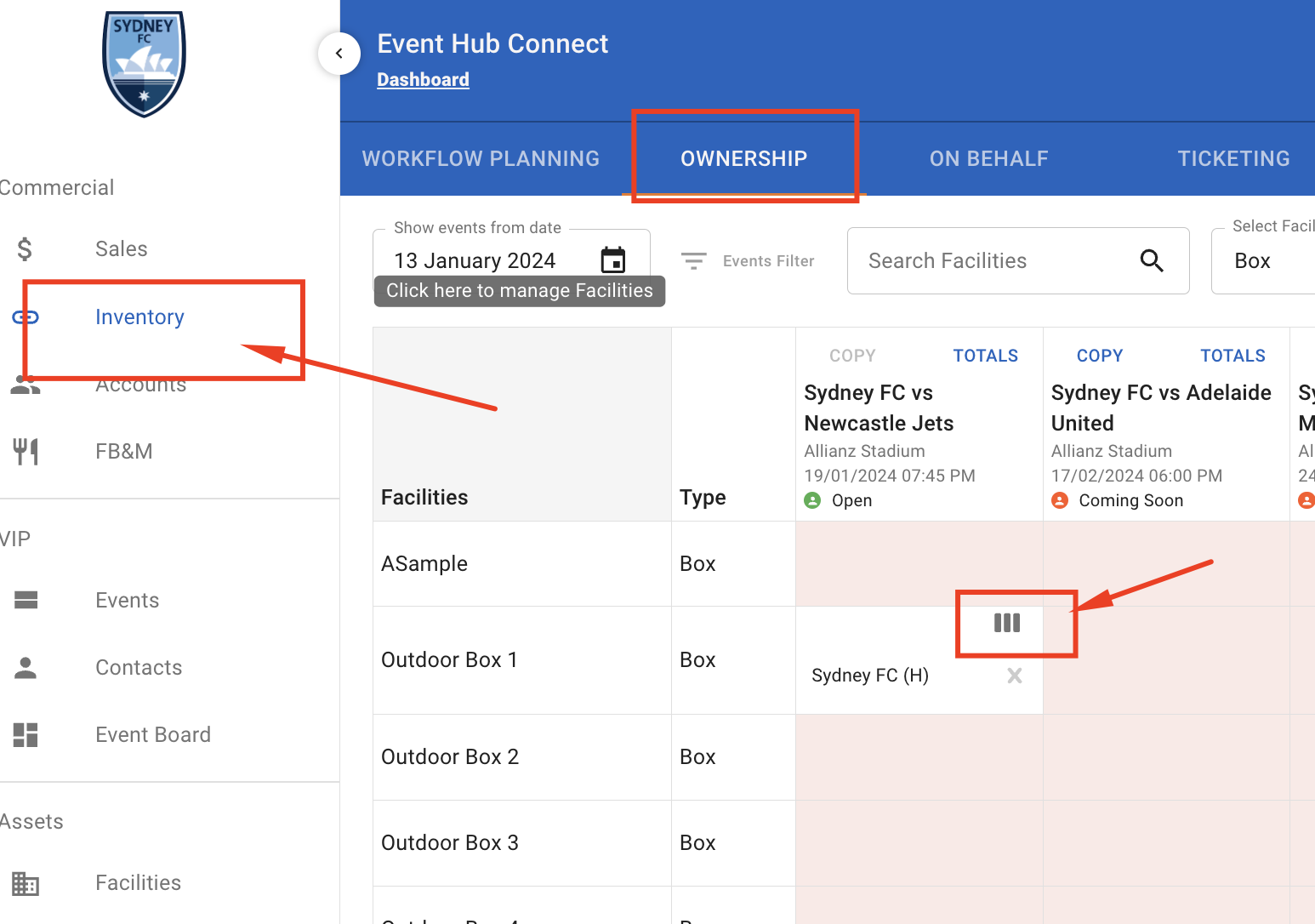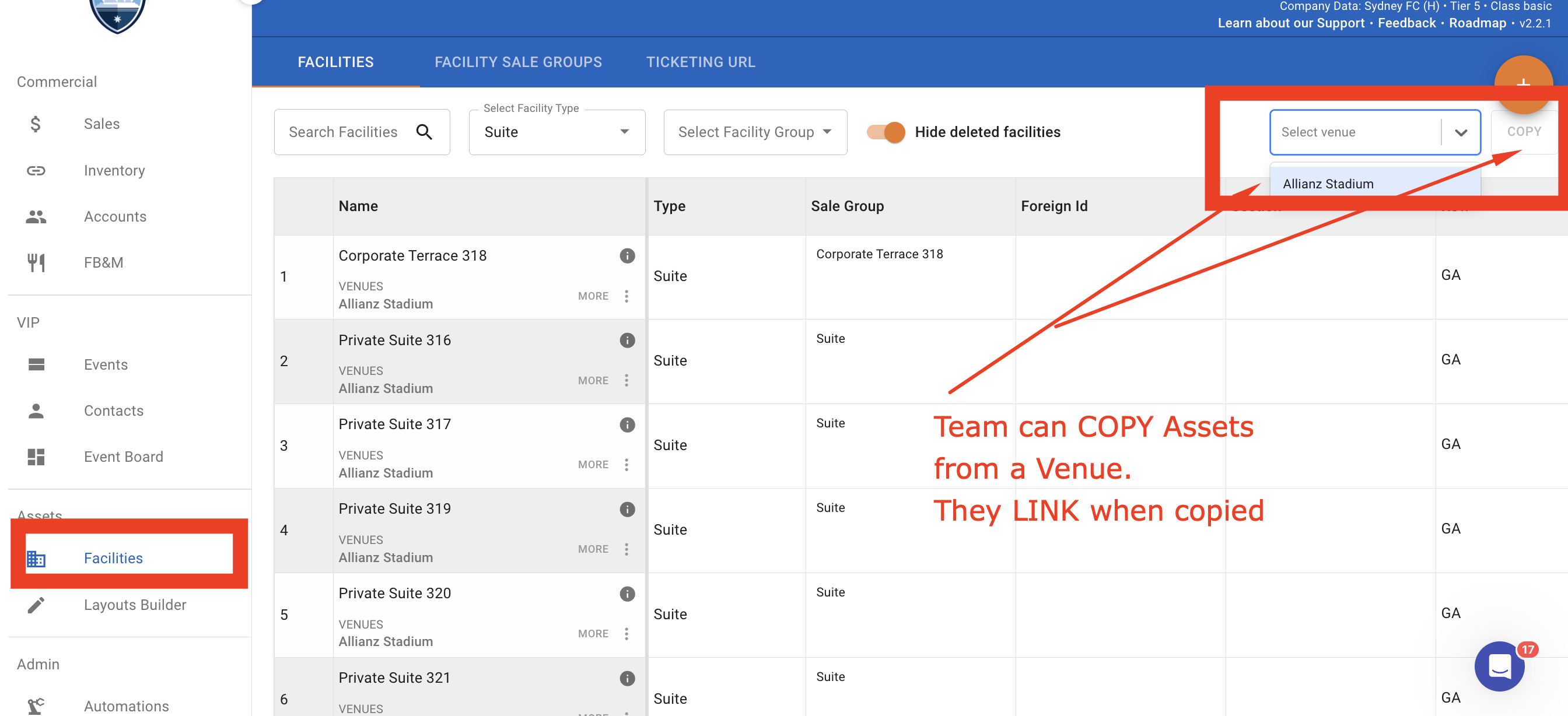 All facilities at the Venue used by the team need to be shared and linked for the first time. This creates an ID between them at the data level. This step is done by the Team Only after the Venue enables the asset for the Team in Step 1.